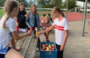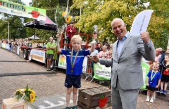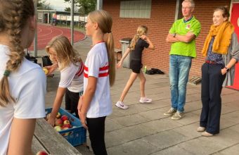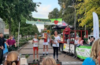 Uitreiking van de appels aan het snelste meisje van Olst en de snelste jongen van Olst