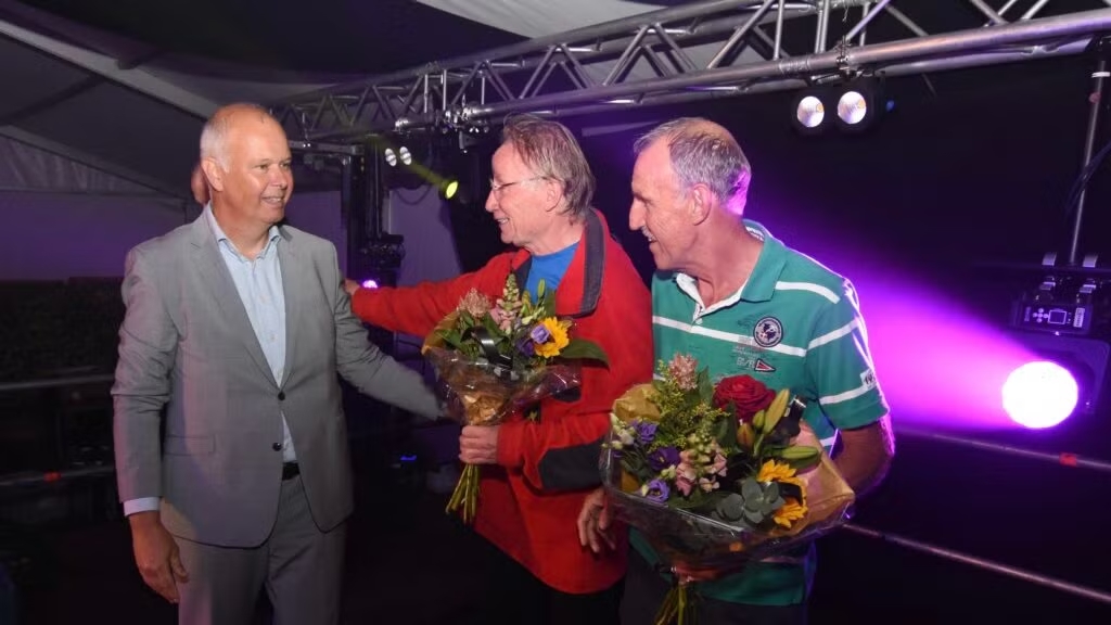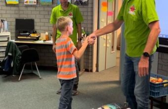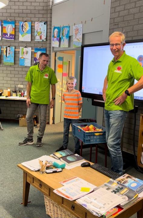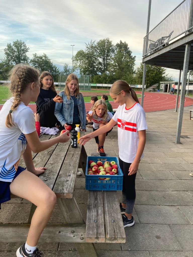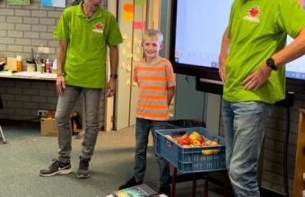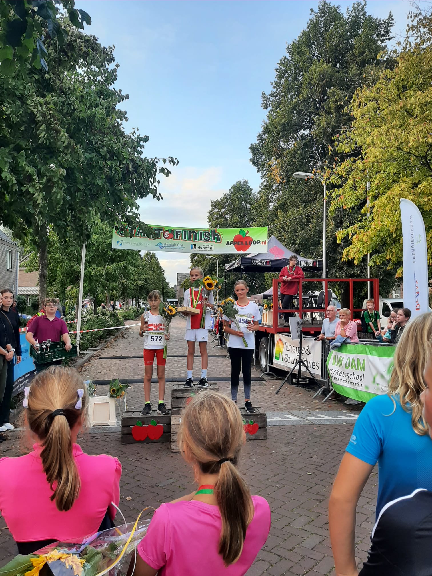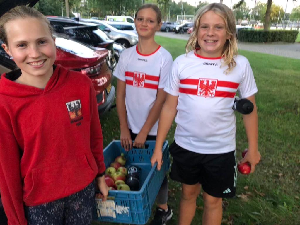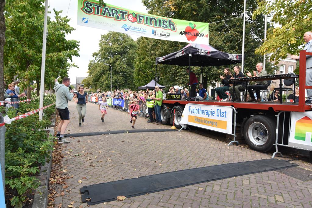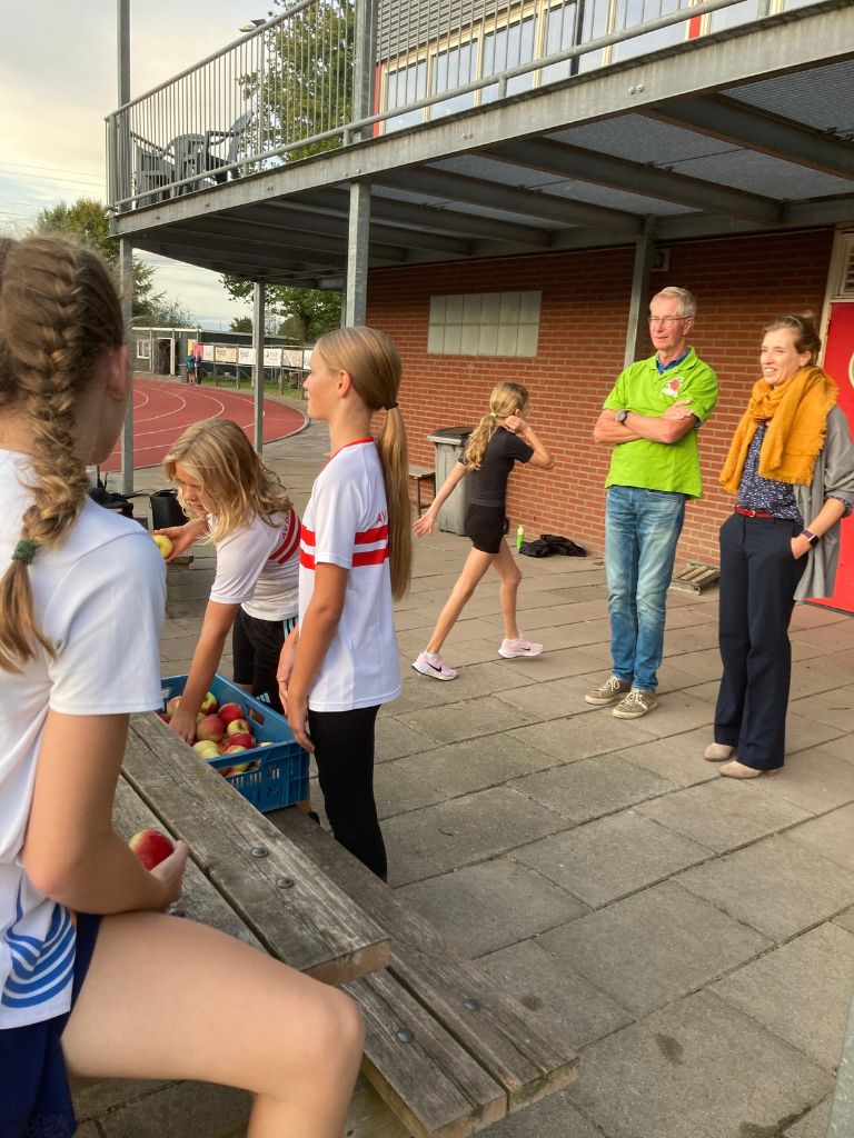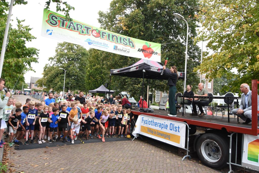 Uitreiking van de appels aan het snelste meisje van Olst en de snelste jongen van Olst